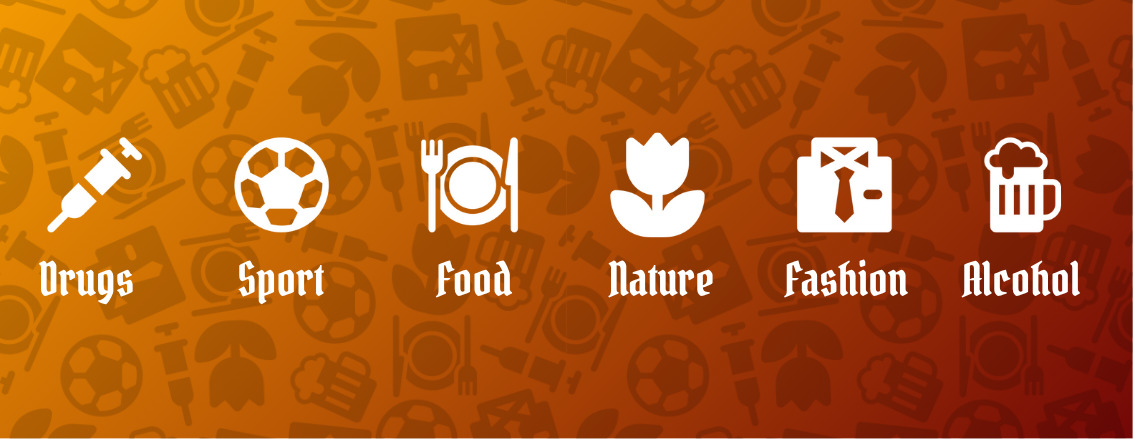 There are six categories in the game, representing the six basic pillars of life for every true Czech: alcohol, nature, fashion, drugs, food, and sports. Each character collects two of these categories: