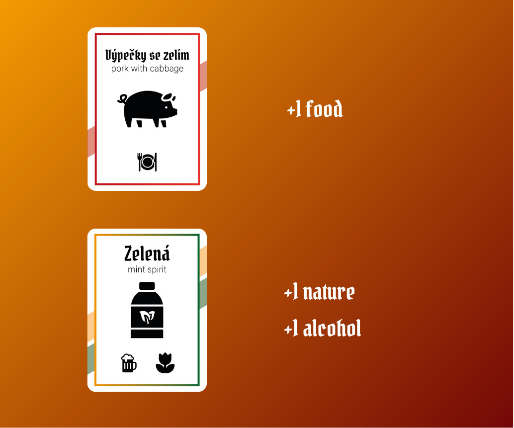After randomly selecting a character, your goal is to be the first to earn 4 points from two categories (for a total of at least 8 points) depicted on your character. You will find points on cards with items or places that are well known to every Czech. And what exactly will you be collecting?