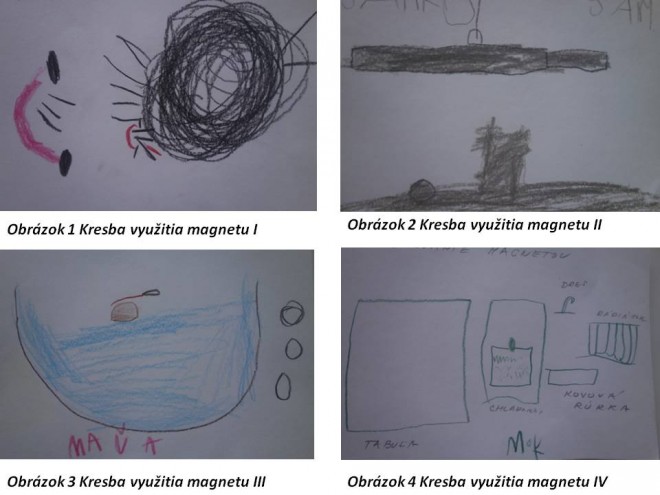 Učiteľka tiež upriamila pozornosť detí na to, že predmety sú magnetom priťahované skôr, ako sa ich magnet dotkne (napr. drobný klinček alebo spinka „priskočí“ k magnetu).