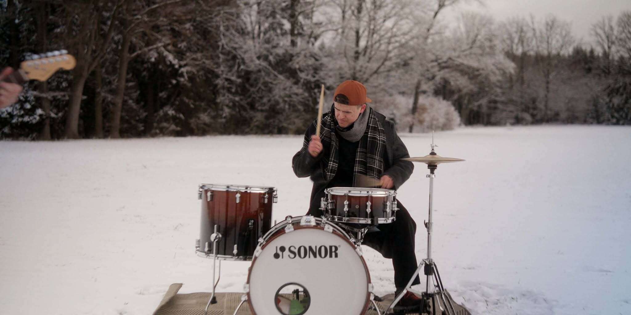 Profík! Mimo záběr trochu v tenzi, že mu sněží do bicích, na kameře živel. A počkejte, až uvidíte, jak Matěj umí mimicky ztvárnit pocity štěstí i zrazení...
