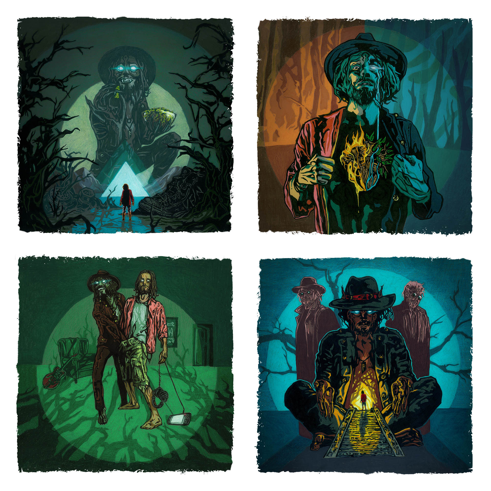 Mojí rukou jsou dělané i samostatné arty v bookletu ke každému songu, které jsem v originální velikosti 300x300mm nakreslil kombinací pastelek a lihovek. Každý jeden kus mi zabral cca 30-40 hodin.