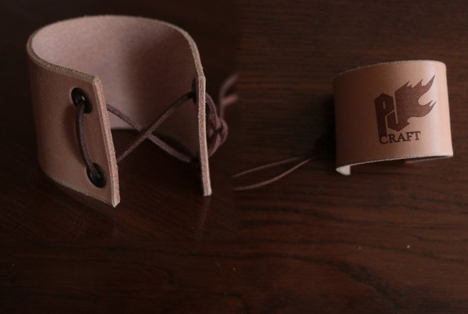 Náramek: Náramek z kůže s vypáleným logem PJ craftu.