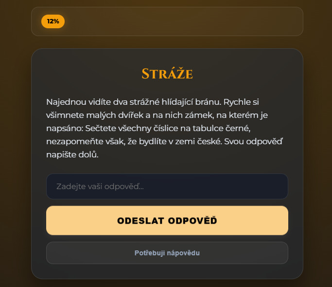 2500 Kč – Legendární podporovatel: 12× herní kód + možnost dřívějšího hraní nových her + možnost integrace vaší zprávy/šifry přímo do další hry + místo na stránce podporovatelů