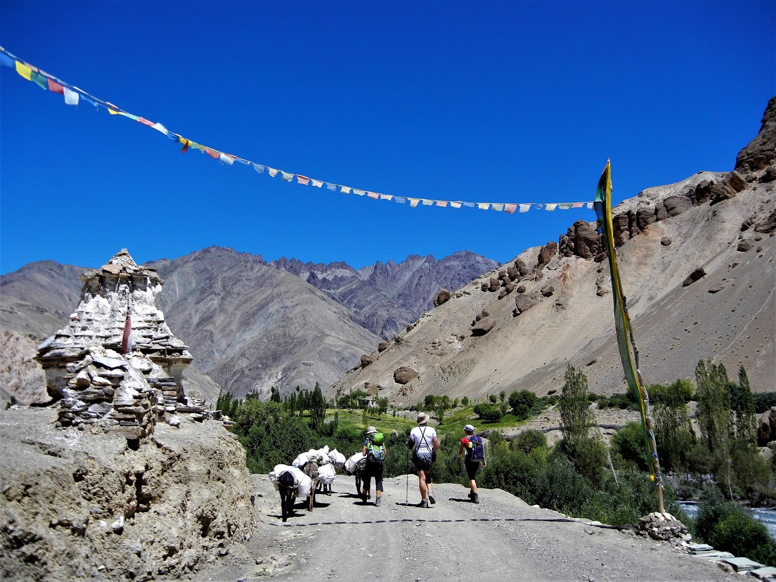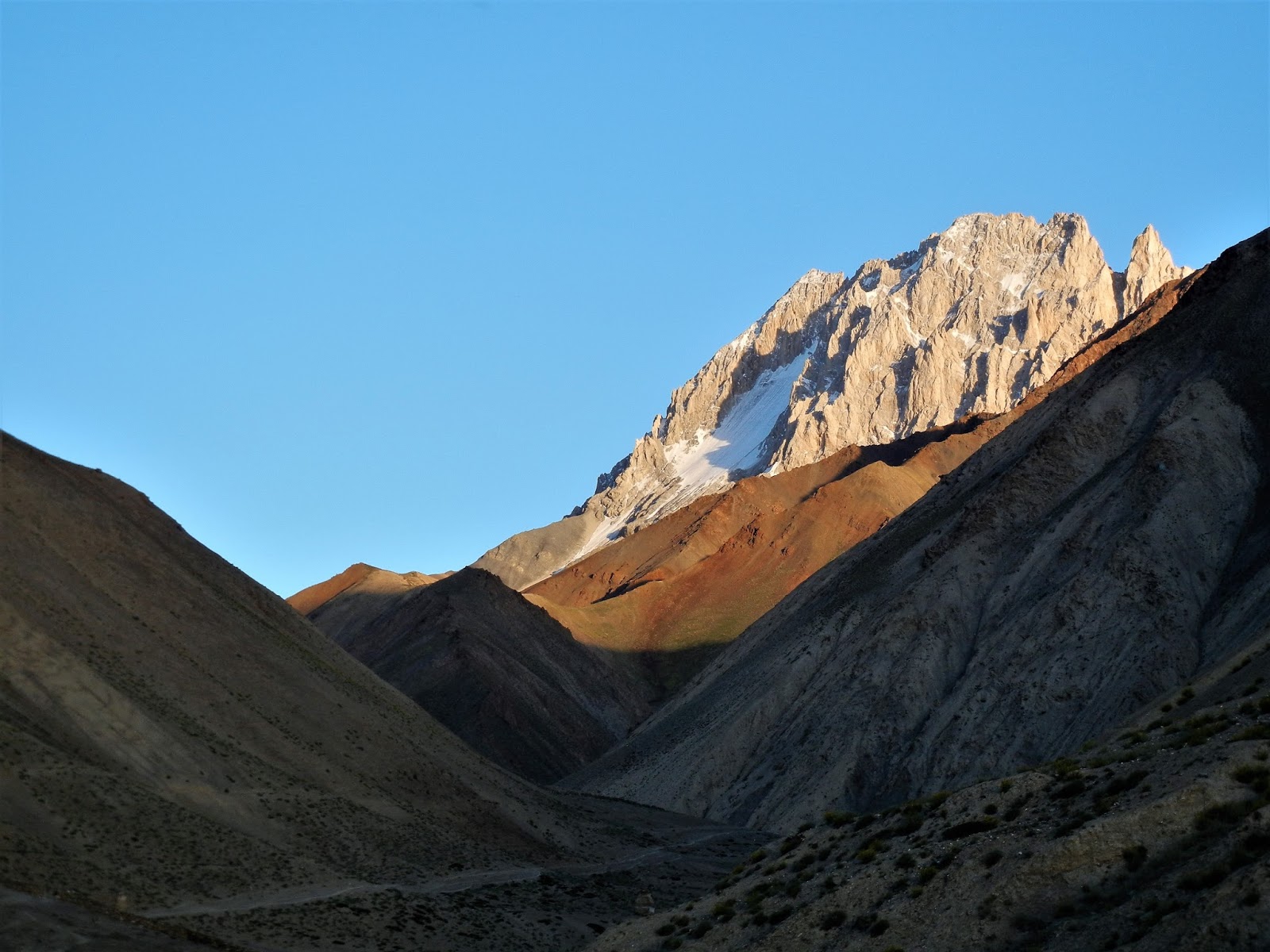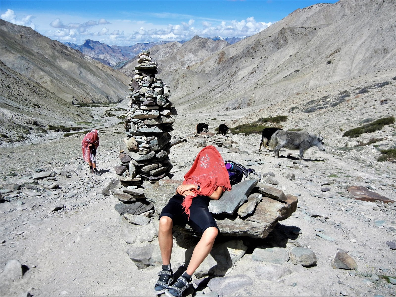 David začíná vypadat podobně, jako včera mladý Francouz. Ale během polední pauzy začíná nabírat zdravější barvu a tvrdí, že je mu líp a cestu zvládne. Jsme zhruba v půlce treku a převýšení téměř 5 000 m n. m. by musel překonat, ať budeme pokračovat dál a nebo se vrátíme zpátky. Jediné, co mu v téhle chvíli můžeme nabídnout je, zůstat alespoň jeden den v Sumdah, než se znovu vydáme do větších výšek. To odmítá, a tak vyrážíme za dalším dobrodružstvím. Naše cesta vede opět nádherným údolím, které mi nechává zapomenout na únavu a mám pocit, jakoby mi zlehkly nohy a jde se mi senzačně. Až do chvíle, než za jednou ze zatáček vidím konec údolí. Vzhůru se tam klikatí cestička a mně je jasné, že to je náš cíl. S velkou Kačkou funíme do kopce a znovu nasazujeme šnečí chůzi. Už sice nejdeme plynule a děláme každou chvíli krátké pauzy. Výborně se u toho ale bavíme a vymýšlíme pravidla naší šnečí chůze.