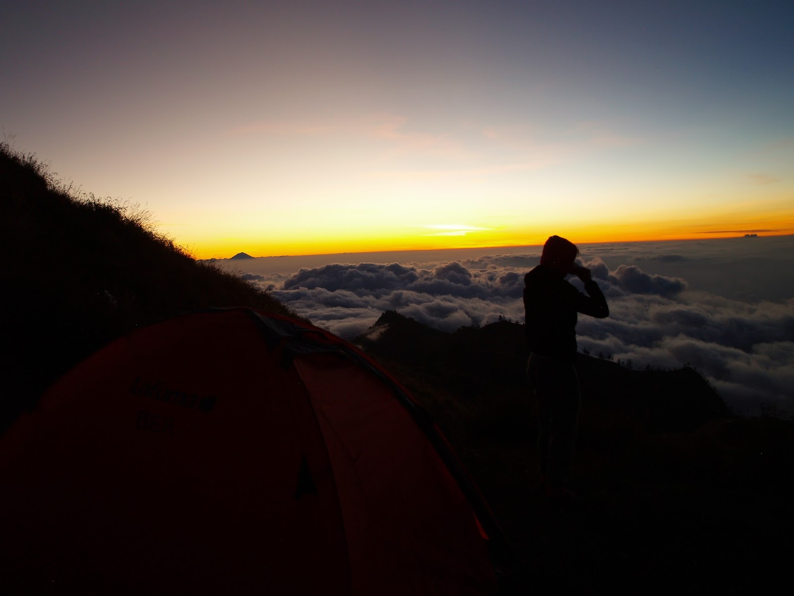Místo pro kempování se nám tentokrát vůbec nelíbí. Nikde není kousek rovného místečka na postavení stanu. Všude jsou hluboké brázdy, jak tudy na jaře stéká voda z hor. Pony men už ale nechce znovu nandavat zavazadla na osli a celá naše výprava je stejně dost zdecimovaná na to, aby mohla pokračovat dál. Zůstáváme. Během stavění stanu mě strašně rozbolí hlava. Beru další dva brufeny a ležíc ve spacáku, tiše trpím. Když se vůbec nehýbu dá se to snést, ale jakmile se snažím dojít si třeba na záchod, mám mžitky před očima. Spíme ve výšce zhruba 4 300m n. m.