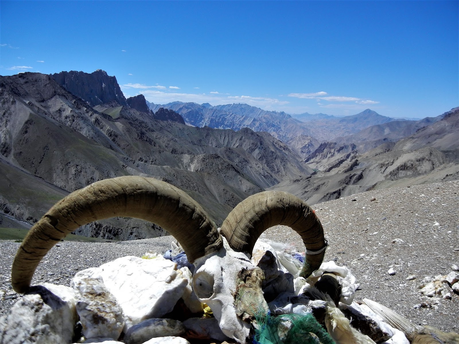 Sedlo je uzounký průsmyk snad jen dva tři metry široký. Ale překrásné výhled mě po náročném výstupu opět vrací potřebné síly. Turisty, kteří jsou schopný si všechny věci nosit na zádech obdivuju čím dál víc. Ne že bych byla na pokraji svých sil, to přijde až později, ale do zpěvu mi rozhodně není. Prvotní neustálé klábosení se takřka vytrácí a jediný kdo stačí v pohodě okysličovat svaly a zároveň u toho povídat je Ivča. Cesta ze sedla dolů vede úzkým korytem stejně tak, jako bylo úzké sedlo samotné. Z očí se nám sice vytrácí nádherný výhled na horská panoramata, ale zato získáváme tolik potřebný stín, který úzký průsmyk poskytuje. Po asi hodině cesty dolů narážíme konečně na vodu. Vzhledem k tomu, že jsem svoji láhev vypila ještě než jsme vylezli do sedla, ruším svoje skálopevné rozhodnutí a pár chladivých loků hltám přímo z potoka. Myšlenka na zkaženou místní vodu mi najednou připadá jako zbytečně hysterická. O několik desítek minut později se ale hysterie vrací, teď už na základě pádných argumentů. Najednou všichni cítíme nasládlý zápach, který mě nenechává na pochybách. Někde tady hnije maso! Přímo v roklince, kde se každou chvíli objevuje a pak zase ztrácí potůček, leží mrtvý osel v pokročilém stadiu rozkladu. Fuj! Se zakrytými ústy a nosem obcházíme zvířecí mrtvolu. I když jsem vodu nabrala ještě nad oslem, kapu do lahve zdvojenou dávku jodu a na první lok čekám až do večera, kdy přicházíme do osady Wanla ve výšce 3160 m. Protože ještě nejsme tak daleko od civilizace, je tu dokonce kemp, kde jsou, něco jako záchody a dá se koupit pivo a kola. Potřebné tekutiny proto doplňuju, radši než vodou, polovychlazeným pivem. Nadmořská výška je více než přívětivá a večer, snad poprvé od příletu do Léhu, nebolí hlava ani jednoho člena výpravy.