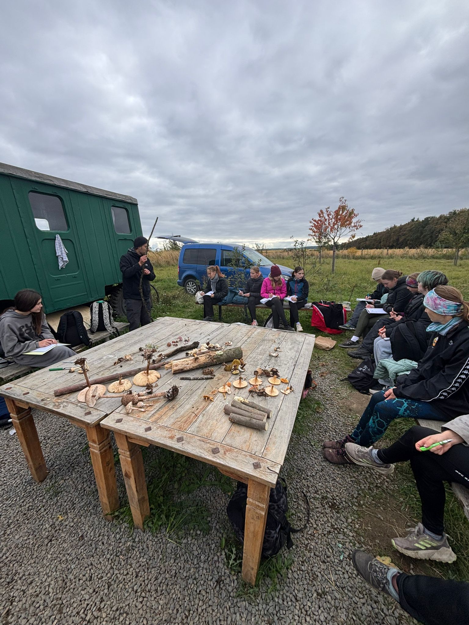 Učíme se jinak, než na běžných základních školách. Soustředíme se na to, abychom rozvíjeli dovednosti, které použijeme v každodenním životě. Jsme vedeni k samostatnosti a soběstačnosti. Děláme mnoho projektů a hodně věcí si plánujeme sami. I tento projekt na Startovači je jedním z žákovských projektů. Na pozemku se i učíme o přírodě kolem nás. Třeba níže na fotce probíhá lekce o houbách.